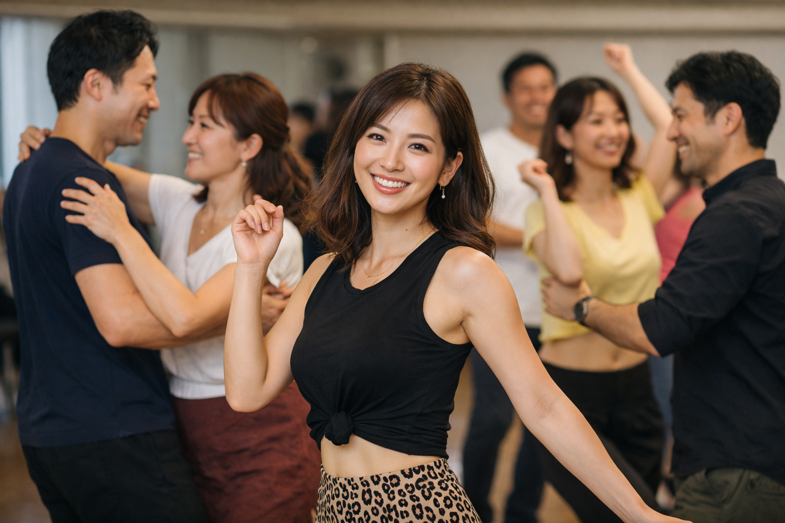 毎週日曜@新宿クラスでは、ダンス基礎から、サルサ・バチャータ・シャインまでを順序立てて丁寧にお伝えしています。忙しい社会人に嬉しい週1集中レッスン設計。ぜひ一度ご体験ください。